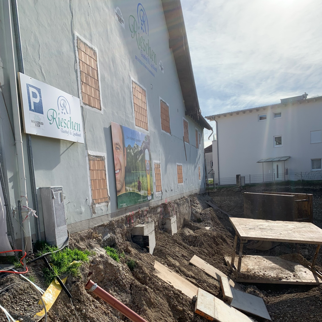 Nachdem es länger still war beim Rieschen beginnt man jetzt mit dem Aushub der Tiefgarage, schliesslich verspricht man ja auch Fertigstellung Ende 2023. Zumindest hat man sich schon mal an die Fenster der Südseite gemacht – aber irgendwie anders als das noch im Entwurf zu sehen war. Es bleibt spannend zu sehen, was von den anfänglichen netten Bildern bleibt wenn es einmal fertig werden sollte.