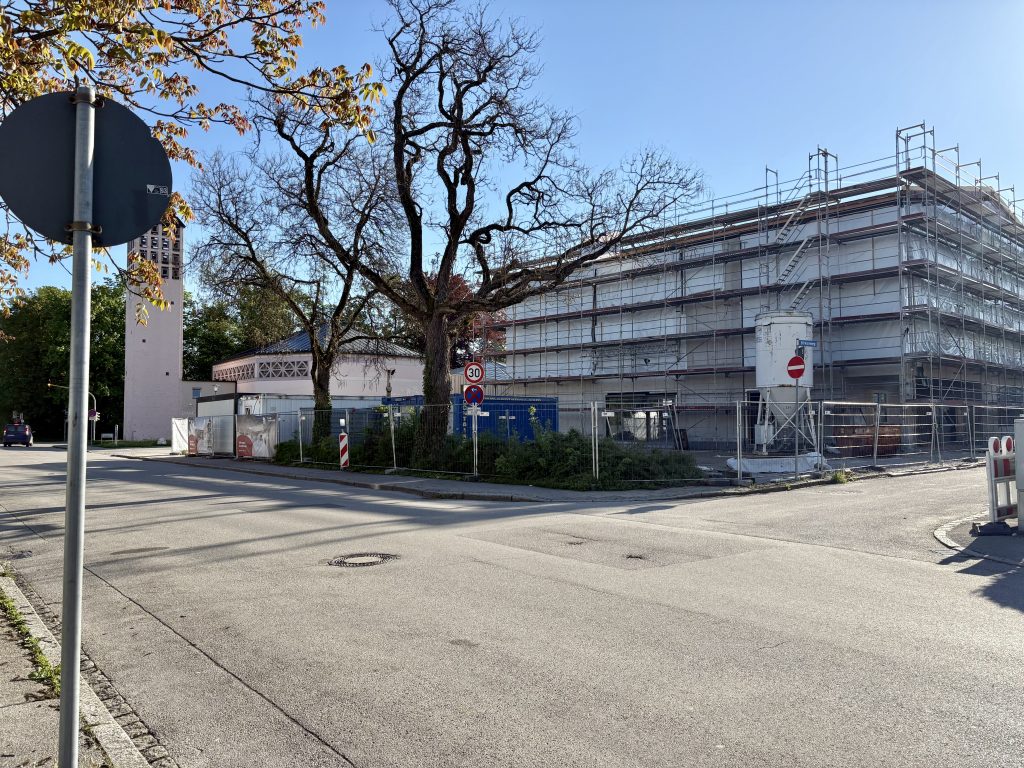 So spielt auch die Stadt als Bauherr mit. Der Teilneubau der Grundschule ist rational richtig und notwendig (weil vieles vorher verpennt wurde), und es ist für sich architektonisch interessant – oder wie Architekten zu sagen pflegen: ein Gebäude mit Selbstbewusstsein im spannenden Dialog mit der bebauten Umgebung. Tatsächlich ist es ein Vordrängler, ein Klotz, der nicht nur den Altbau sondern auch die Kirche daneben mit seiner Wucht bedrängt, der die kleinteilige Bebauung am Birkenweg wie ein böser Schatten überragt. „War nicht der Altbau selbst auch so ein massiver Eingriff?“ wird man fragen. Tatsächlich baute man die Schule damals mit ausreichend Abstand, mit einem einladenden Park respektvoll in die Landschaft. Sogar die damalige Villa, die dort stand, wo heute die Unterführung zum Badylon ist, passte mit Sörgelvilla und Schmuggler ins Gestaltungsbild.