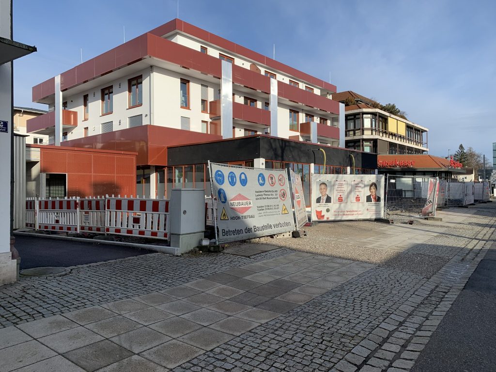 Und genau das bekommt jetzt einen Ableger in der Richard Strauß Straße. In ähnlichem Stil aber mit umlaufenden Balkonen und Holzpaneelen dahinter. So was gibts ja schon in Freilassing (ohne Holz Optik) seit kurzem in der Hauptstraße direkt neben der Sparkasse. Auch dort hat das Werbebild ganz anders ausgesehen.