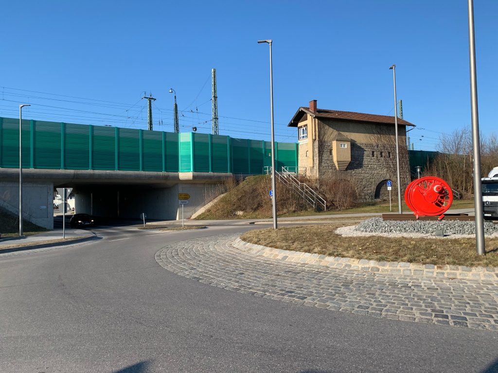 Ein pittoreskes Gebäude zwischen Kastanien? Das darf man so nicht stehen lassen. Daher wurde hier im Rahmen des „Gleis 3“ ganze Arbeit geleistet. Nach dem Entfernen der lästigen Bäume hat man das Gebäude zwischen die völlig überdimensionierten und hässlichen Lärmschutzwände eingeklemmt und um dem Ganzen die Krone aufzusetzen daneben gleich eine Betonfassade einer höchstens durchschnittlichen Unterführung gestellt. Man sollte sich überlegen, von Eisenbahnerstadt auf Betonstadt umzusatteln.