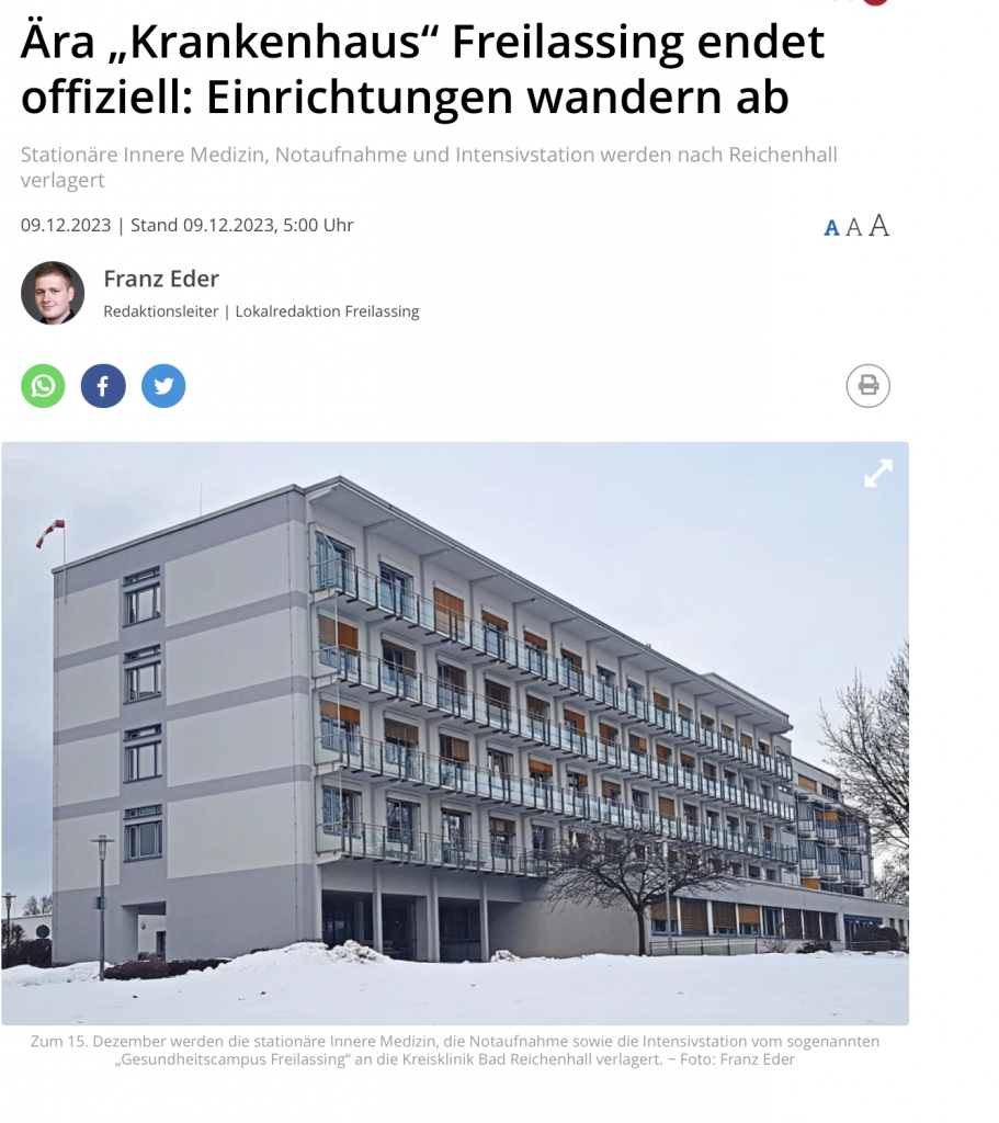 Anbei mein Leserbrief zum Artikel „Ära „Krankenhaus“ Freilassing endet offiziell: Einrichtungen wandern ab” vom 9.12.23