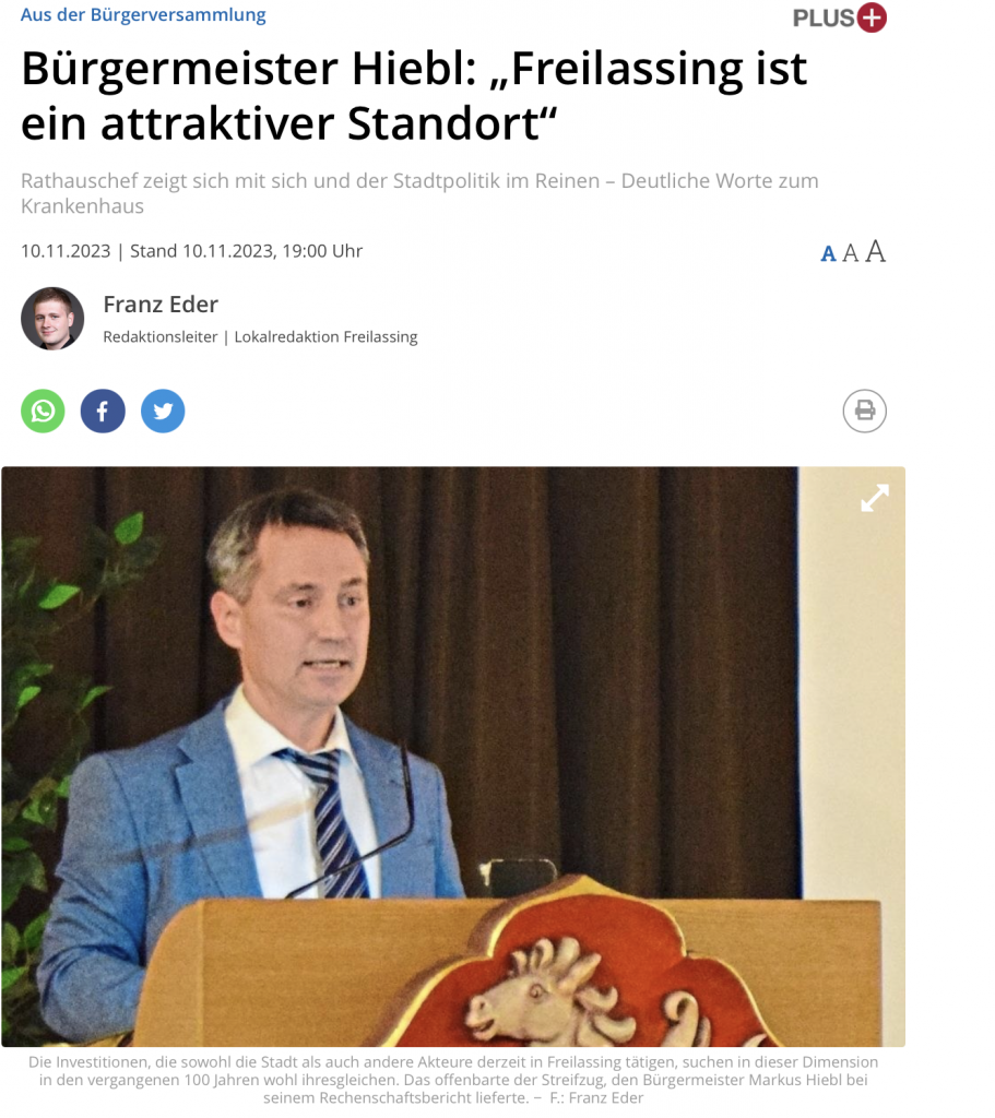 Anbei mein Leserbrief zum Artikel „Bürgermeister Hiebl: „Freilassing ist ein attraktiver Standort“” vom 10.11.2023